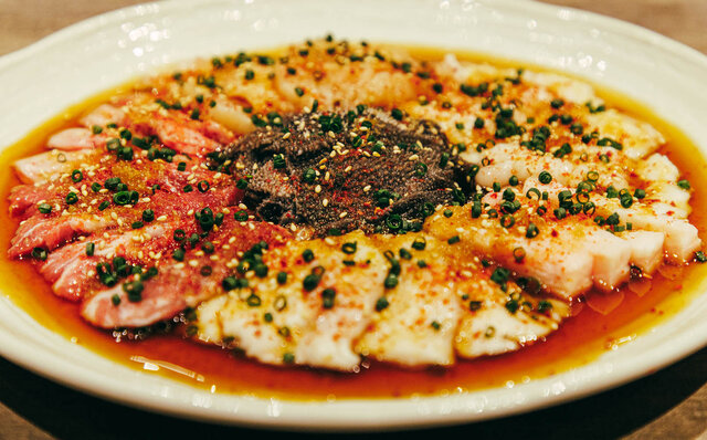 圧倒的な“肉力”で食後の感動を約束する「焼肉うしごろ」が国産ホルモンの中でも優れた品質のものにこだわり、経験に裏打ちされた確かな目利き・熟練の包丁さばきで仕上げる 「極みのホルモン や、手間を惜しまず丁寧に仕上げた刺しなど、数々の逸品を味わうことができるホルモン専門店『焼肉ホルモンうしごろ』。