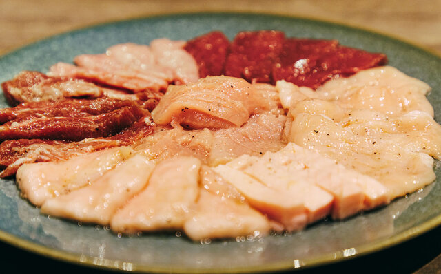 丁寧に手切りした新鮮な赤身肉に特製ダレを纏わせ、さっと炙ってお召し上がりください。