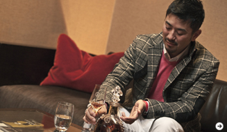 デザインに携わる身としては、ボトルの造形もルイ13世に触れるうえで外せないファクター。どの角度から見ても、神々しいまでの存在感がある。価値観を同じくする人たちと杯を重ねるとき、傍らではなく中心に置きたくなるような……力ある個性を感じますね。自分が仕事としている“水”と“空間”、“アート”という観点からも、ぜひコラボレーションをしてみたい存在。ボトルを模した造形のなかに魚を放つ、ボトルで壁面を埋め尽くす……水=ブルーというイメージが強いかとおもいますが、この琥珀色を活かして既成の概念にとらわれない空間を作ってみたい。