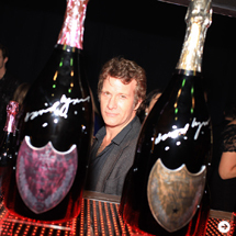 空間が満員になり、期待が最も高まったその一瞬、その空気を破るようにデヴィッド・リンチが登場する。入口が騒がしくなり、歩みを進めるリンチ、そしてドン ペリニヨンの醸造最高責任者であるリシャール・ジェフロワ。二人の姿は会場内中継によって大スクリーンにも上映される。全員の眼差しが入口に注がれる中、リンチはカウンターに近づき、そこに飾られたブランとロゼの特大ジェロボアムボトル(3リットル)にサインを施す。このジェロボアムボトルもリンチのデザインによるものであり、リンチ自ら、ドン ペリニヨンとのコラボレーションにその証を刻んだこととなる。