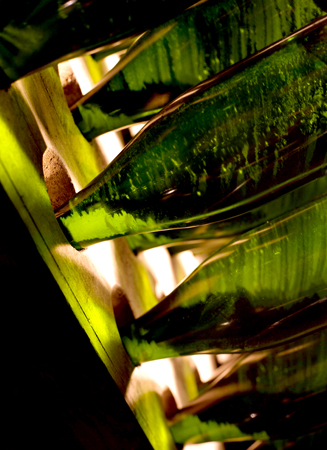 モエ・エ・シャンドンのセラーにて。瓶内二次発酵後、ボトルの口に澱を集める動瓶台。動とつくのは、斜めに刺さったボトルを少しずつ回転させ、澱を移動させるため。1800年代のシャンパーニュでの発明品のひとつ。現在はこの作業を自動化したものもある。