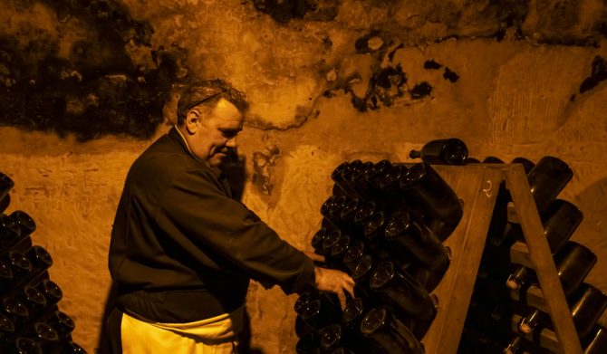 この時期のシャンパンの父というべき人物のうちで、とりわけよく知られているのがドン・ピエール・ペリニヨン。ベネディクト会の修道士で、そもそもミサで使われていた赤ワイン用のブドウから澄んだ果汁を得る技術や、ことなる産地のブドウを混ぜて使うことで品質を高める、アッサンブラージュの元となる技術を生み出したとされている。