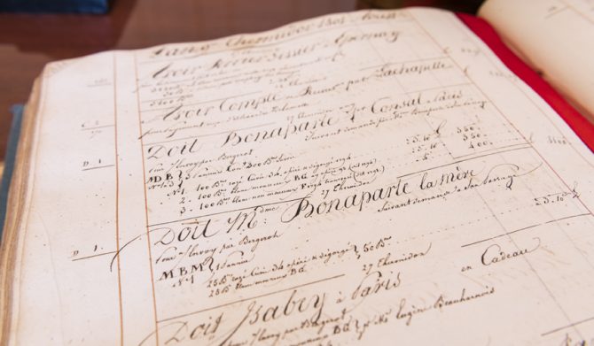 ナポレオンはモエ・エ・シャンドンのお得意様だった。シャンパーニュ地方エペルネにある、モエ・エ・シャンドンの発祥の地にして現在も本社がある「ホテル モエ(モエの館)」にはナポレオンが試飲に訪れたという「ナポレオンの部屋」があり、そこには皇帝が酔って眠くなってもいいように、ソファーもある。そして、ナポレオン一家からの注文を取りまとめたノートが、いまも残っている。