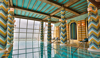 ホテルの18階を占有しているのは「アサワン・スパ」。アラビア語で“癒しの石”という意味を持ち、14のトリートメントルームを有するこのスパの人気は、インドアのスイミングプールだ。人気の秘密はただのスイミングではなく、ロマンチック・ムーンライト・スイミングと称した貸し切りプールのアレンジで、水面にキャンドルを浮かべ、シャンパーニュを楽しむことができるもの。