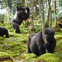 マウンテンゴリラは常に移動する。その群れの動きに合わせて、私たちも観察をつづけるのだが、最初に説明したとおり、群れに同行できるのは1時間と決められている。本当にあっという間だ。出会った瞬間は大興奮。次第に心が穏やかになっていく自分に気づく。「優しいことは強いこと」。マウンテンゴリラは、そんなことを私たちに気づかせてくれる気がした。