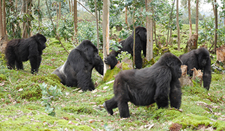 マウンテンゴリラは、特定の縄張りを持たず、群れ同士が遭遇して争いにならないように山中を移動している。そのため、トラッカー(基本的にガイドはせず、動物の足跡や糞などを頼りに、動物を探す専門職)が先に山に入り、ゴリラの同行を察知して、おおよその位置関係を把握。参加者の年齢や体力等の状況をふまえて、参加者がどのファミリーにアプローチするかを検討してくれる。