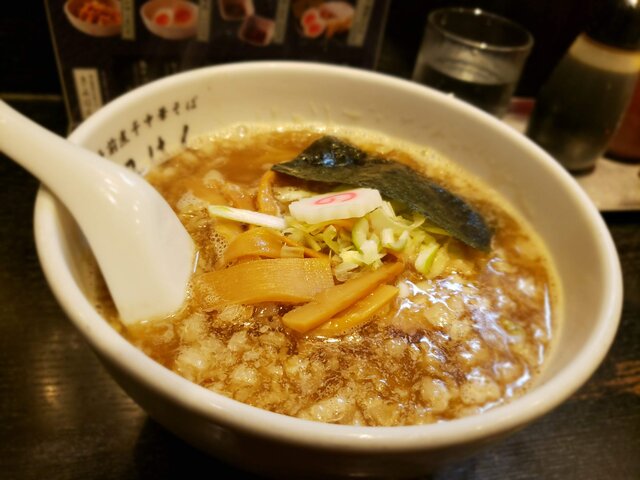 そうは言っても、平日の真っ昼間は時間がない。そんな時は高架下。立ち喰いうどんの日本一として名高い「おにやんま」。または、煮干し中華そばの「きみはん」。僕は中華そばが好き。そして煮干しラーメンも好き。「凪」のような濃ゆい煮干しラーメンも好きだけど、きみはんのそれは煮干し独特の香りとコクをきっちりと残しながら、えぐみやしつこさはない。初めて食べたのは、肉を喰って、都々井で寿司を喰って、都々井の上階で酒を呑んで歌った後の深夜。そんな状態でもサラリと食道を流れて胃腸にストンと落ちてくれた。そして翌朝ももたれることなくスッキリしていた。そこから夜はもちろん、昼も立ち寄っている。