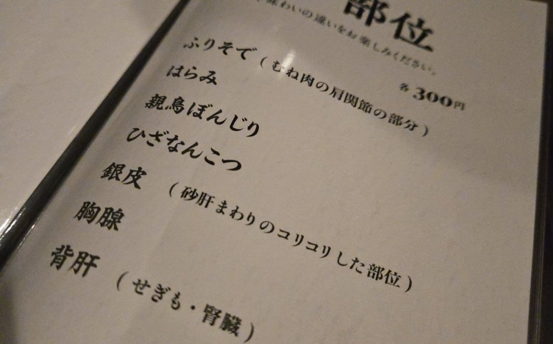 鳥皮ポン酢に始まり、希少部位の串焼きをひと通り楽しみ、箸休めに茄子の一本漬けをつまむ。最後に親子丼をかき込んで締めるという流れが、ひとり飲みにはしっくりくる。