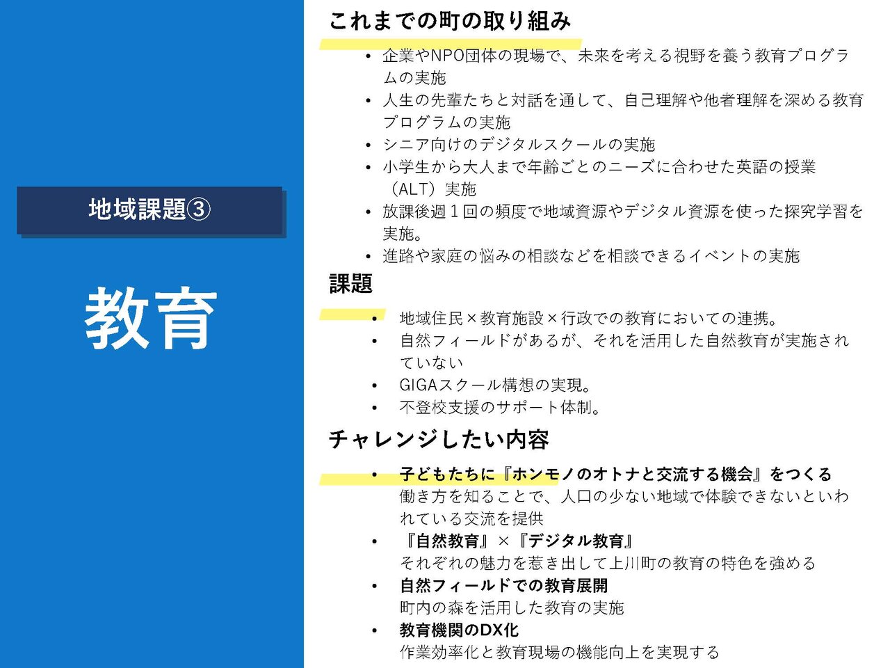 上記が今回の「上川町やってみよっ課」で取り組みたい地域課題だ。