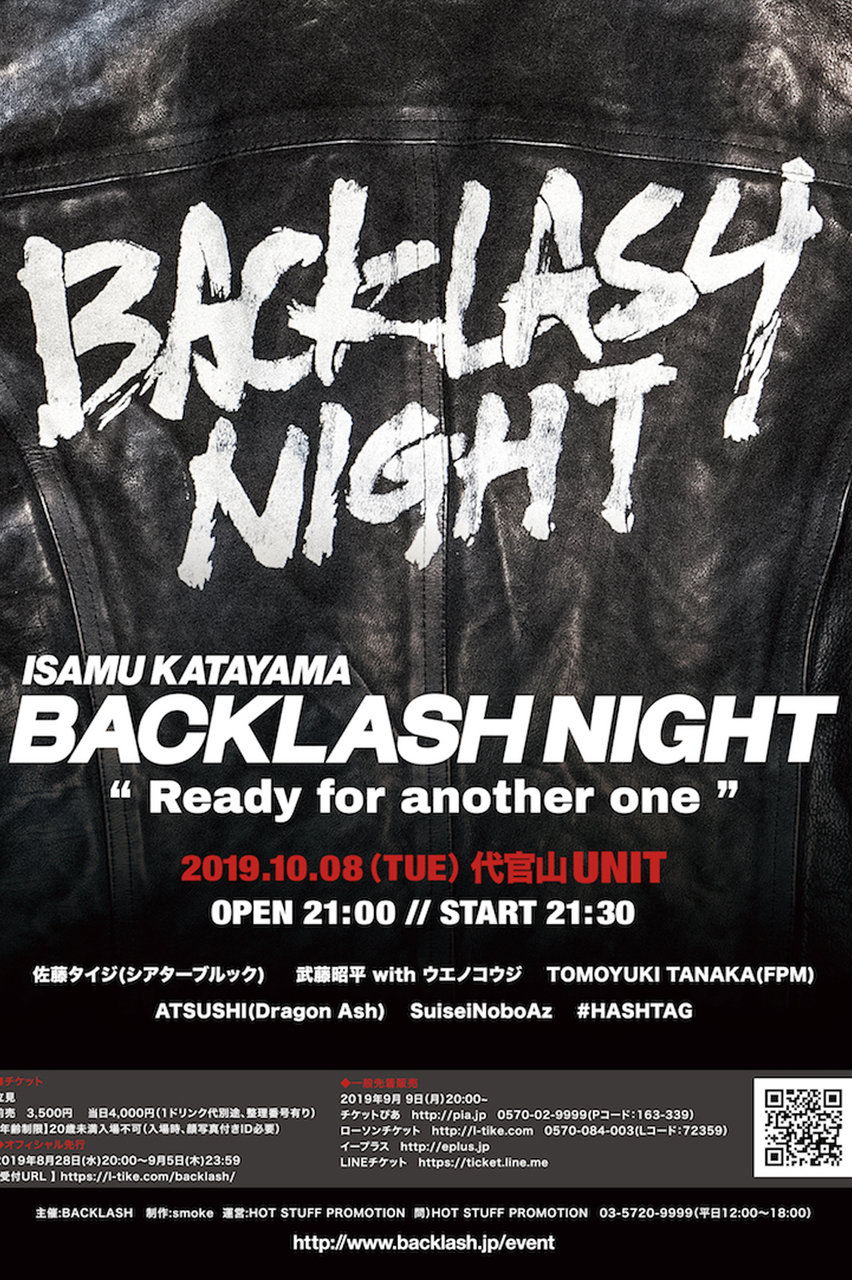 加えて、ショーライブの後にはアフタートークライブも開催。ショーライブ出演者と、「ISAMU KATAYAMA BACKLASH」の創設者である片山勇氏から、どのような発言が飛び出すのか注目のイベントだ。