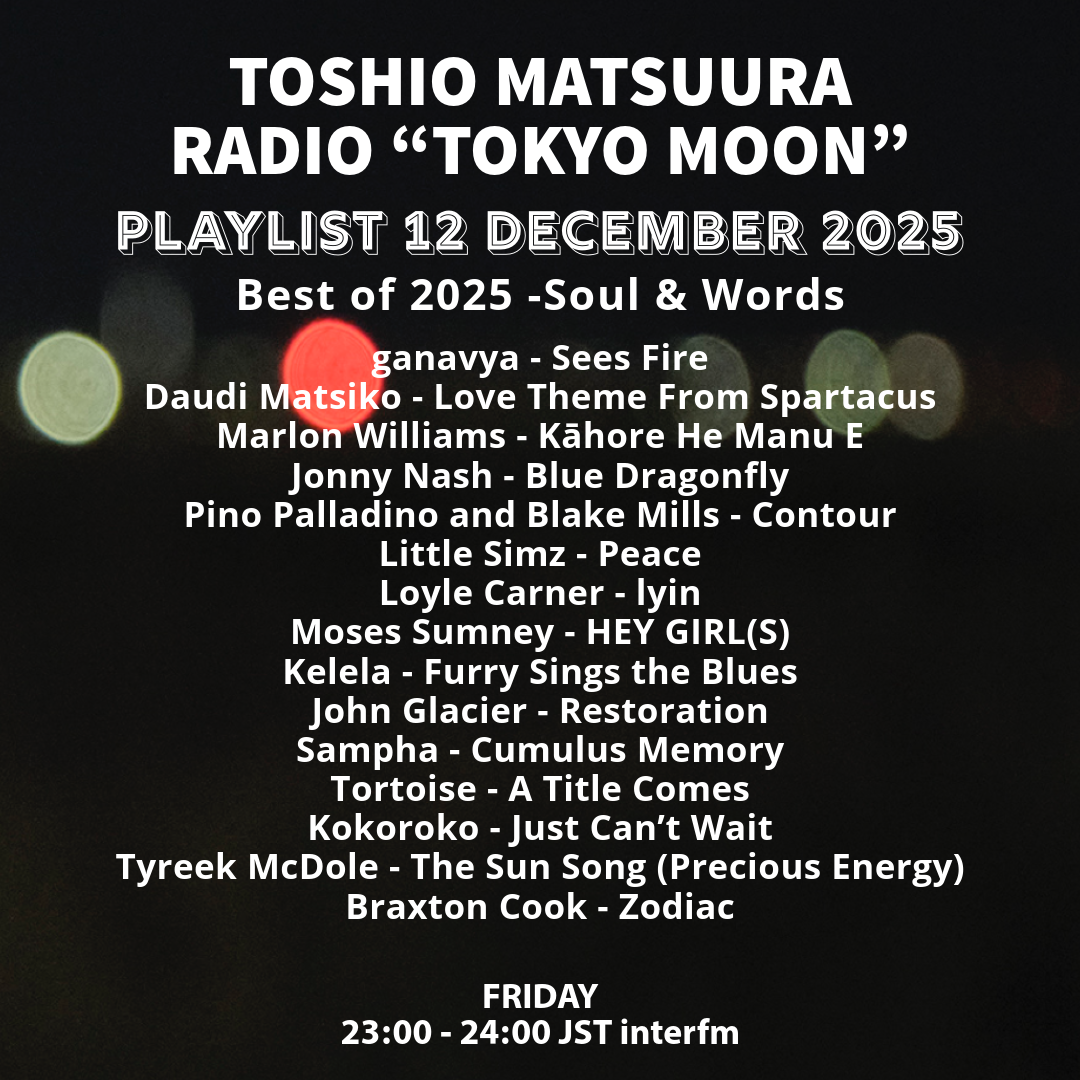 His radio show “TOKYO MOON” every Friday 23:00-24:00 (JP) on interfm