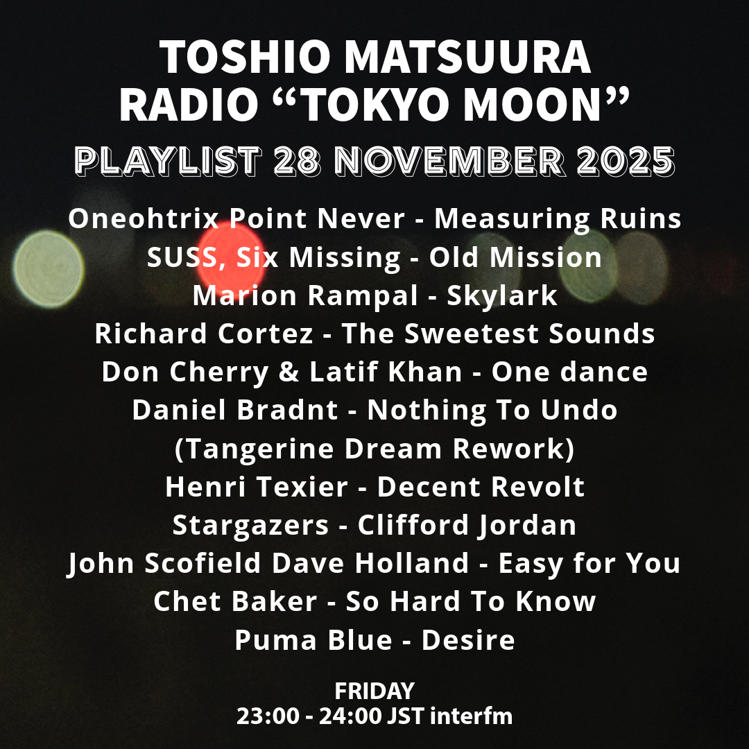 His radio show “TOKYO MOON” every Friday 23:00-24:00 (JP) on interfm