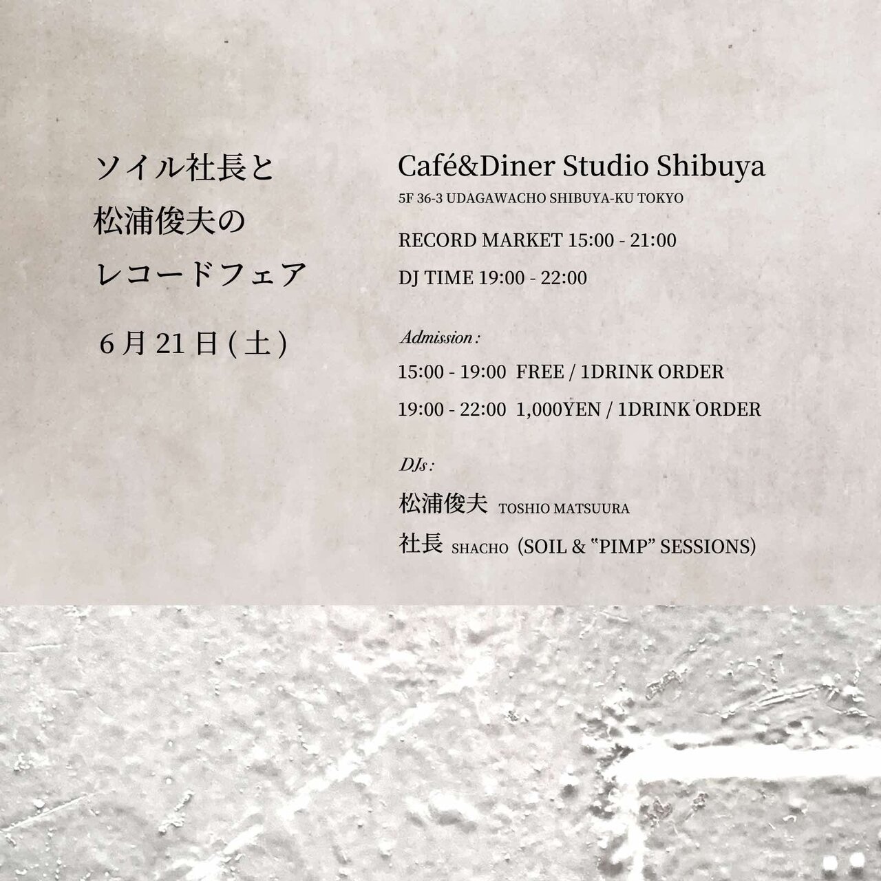 DJs : 松浦俊夫 TOSHIO MATSUURA SHACHO (SOIL & “PIMP” SESSIONS)