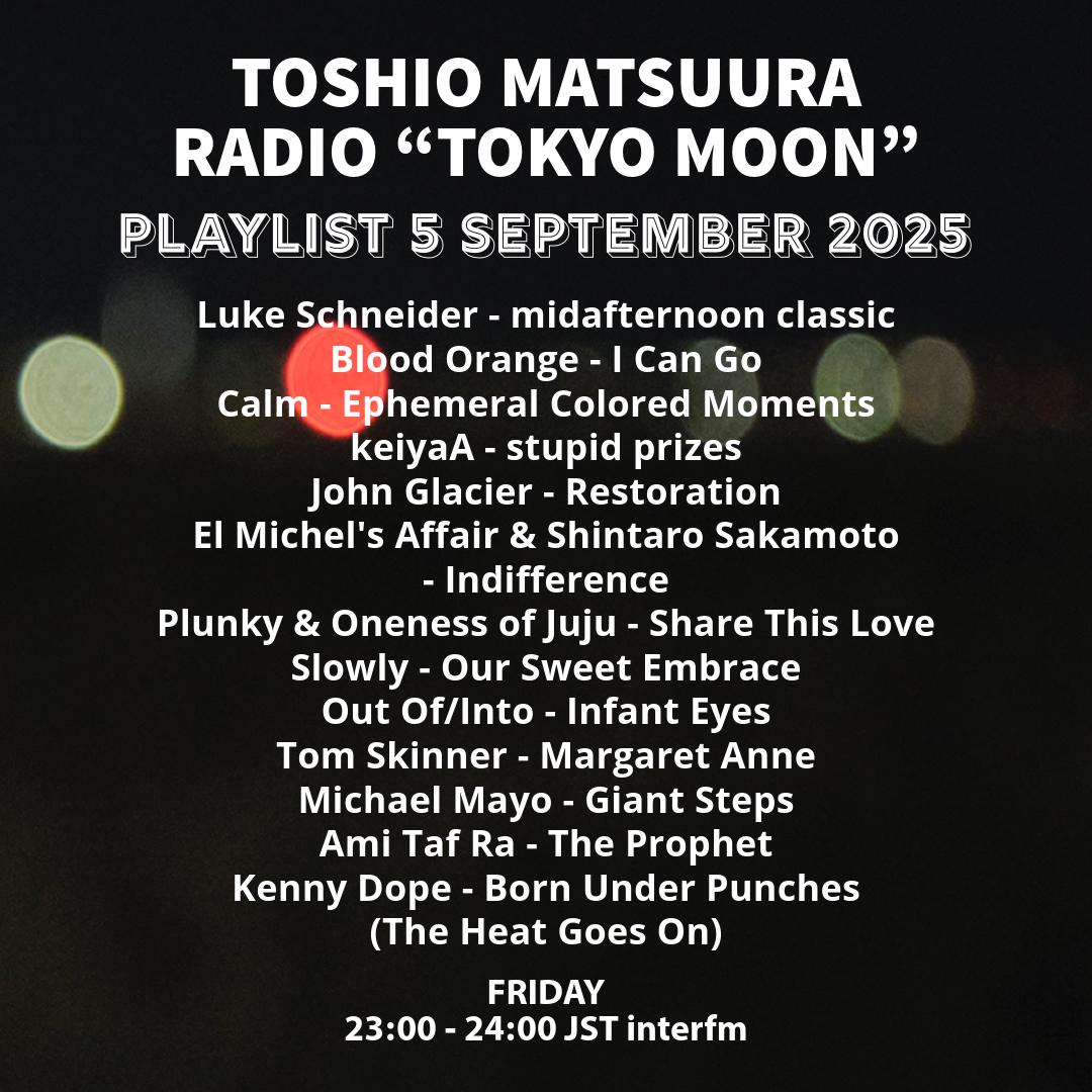 His radio show “TOKYO MOON” every Friday 23:00-24:00 (JP) on interfm