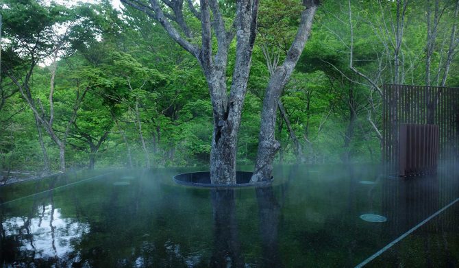 渓流が目の前に広がる露天風呂や、岡本太郎作の巨大暖炉が印象的なロビーが癒しの空間を醸し出す。「渓流スローライフ」をコンセプトに心から満たされる滞在が演出されている。
