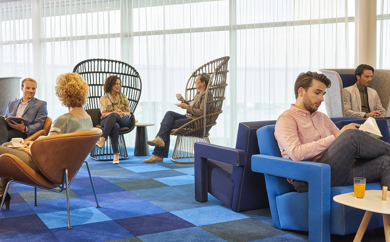 ラウンジはスキポール空港のEゲートとFゲートの間に位置しており、到着時にはパーソナルラウンジアシスタントがゲストを暖かく迎える。