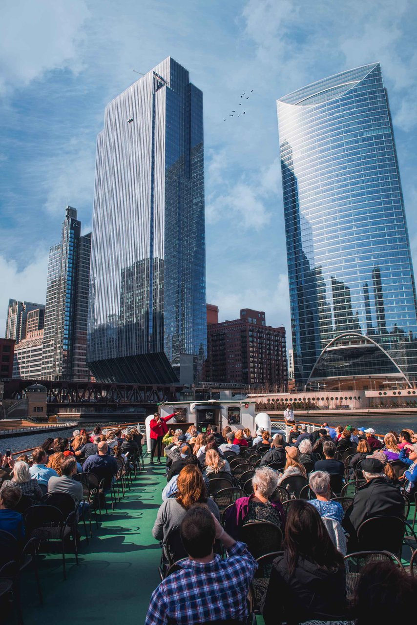 そうした名建築たちを楽しみたい人にお薦めなのが、シカゴ建築財団が企画しているリバークルーズだ。クルーズ船に乗って、シカゴ川沿いに立つ新旧さまざまな様式の建築を、ガイドによる解説を聞きながら観察できるからだ。ここでは、リバークルーズで楽しむことができる代表的な建築について紹介したい。