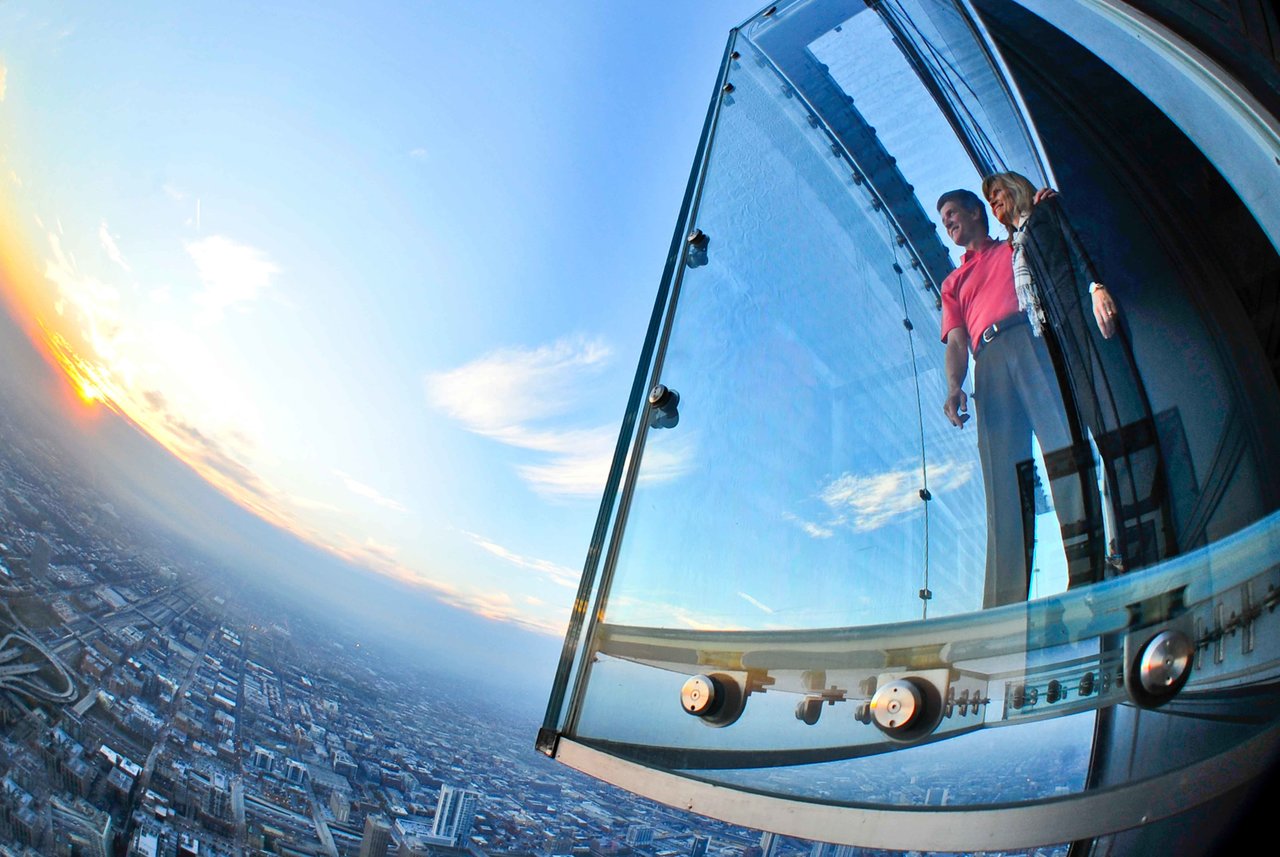 ウィリスタワーについては、たもとから眺めるだけではなく、103階にある展望室「スカイデッキ」を訪れることをお薦めしたい。同展望室には、窓から飛び出すような形で設置された奥行き1.3メートルほどガラス張りのボックスがあり、その中に身を置くと、地上約412メートルの高さで空中に浮いているかのような体験ができるからだ。「ザ・レッジ」と名付けられたそのガラスボックスからは、最大約80km先まで見渡せ、4つの州の景色を楽しめるという。