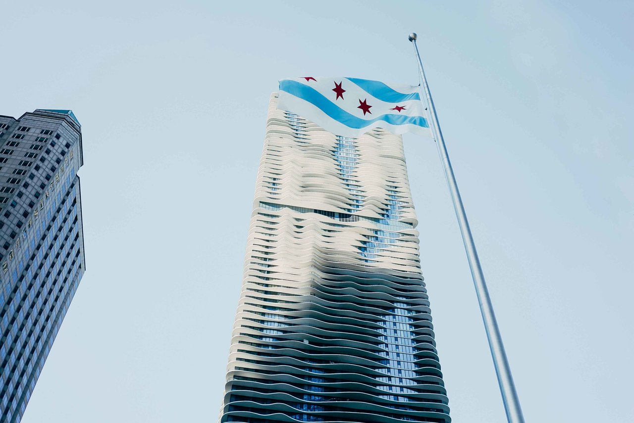 リバークルーズ終盤、スタート地点へ戻った船がさらにミシガン湖方面へ進むと、右手に姿を現すのが「アクア」(2010年)だ。波のようなさまざまな曲線で象られた白いボードを幾重にも重ねたかのようなファサードが印象的なこのビルは、建築設計はシカゴをベースとするアメリカ人女性建築家、ジーン・ギャングによるもの。262メートル、87階を誇るこの超高層ビルは、現在、女性建築家が手掛けた建築のなかで最も高いのだそうだ。