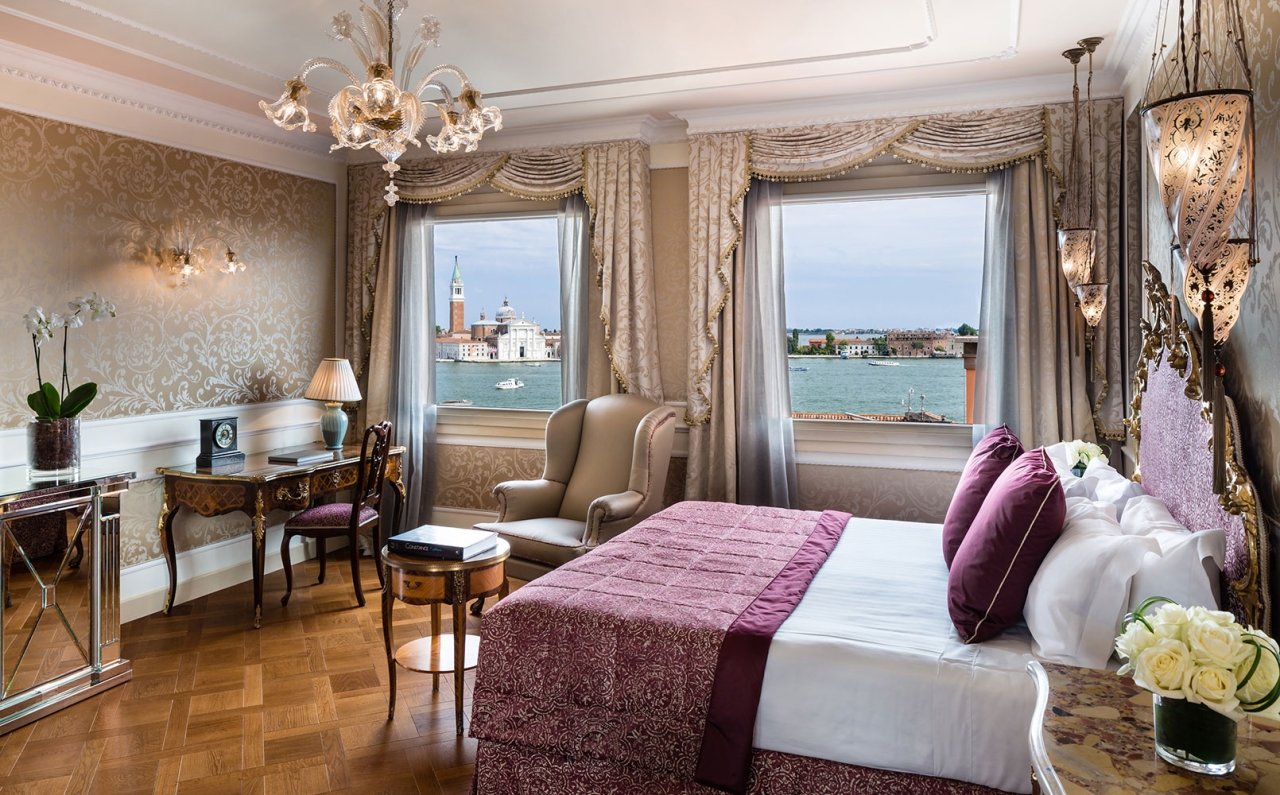 館内は、ムラーノ製のシャンデリア、オリジナルのフレスコ画、エレガントな大理石のバスルームといった、ヴェネツィアの伝統的な美が随所に息づいている。特に、サン・ジョルジョ島のパノラマ景色を一望できるテラス・スイートは、ラグーンの美しさを堪能できる特等席だ。