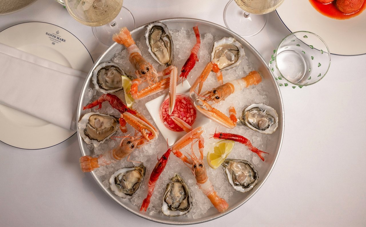 サント マーレのメニューは、地中海各地から届く最高品質の魚介類を主役に据えた、シンプルながら印象的な構成だ。
