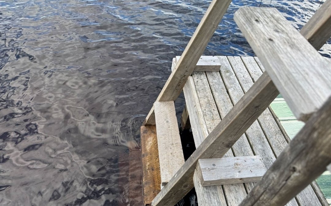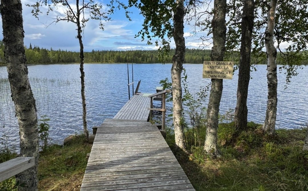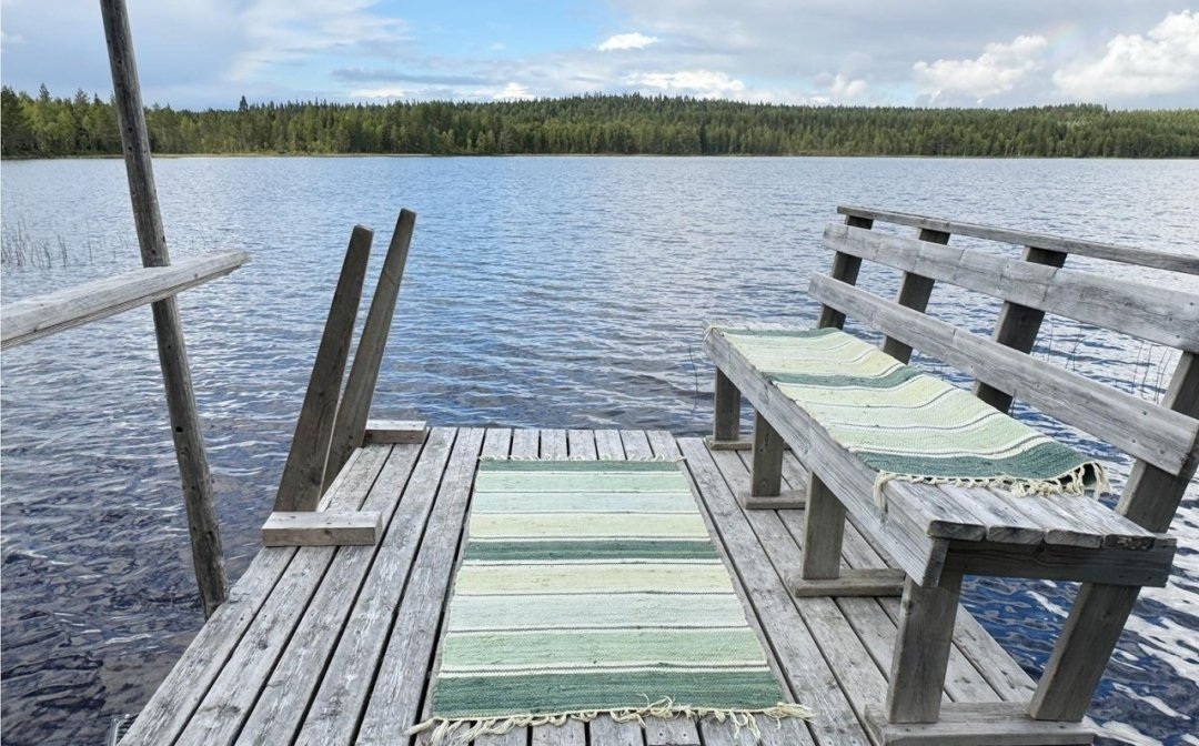 Isokenkäisten Klubiの湖畔の“ととのい”スペース。手前にはサウナ小屋がある。波紋一つ起こらない静寂さを心ゆくまで堪能できることが、この地を訪れる最大の理由。
