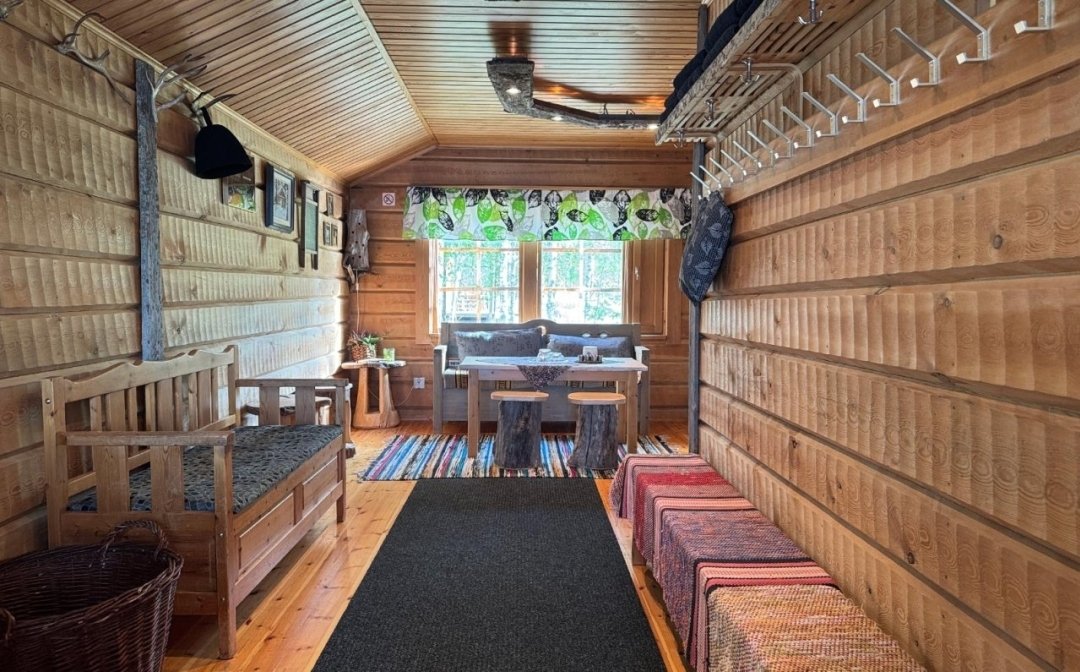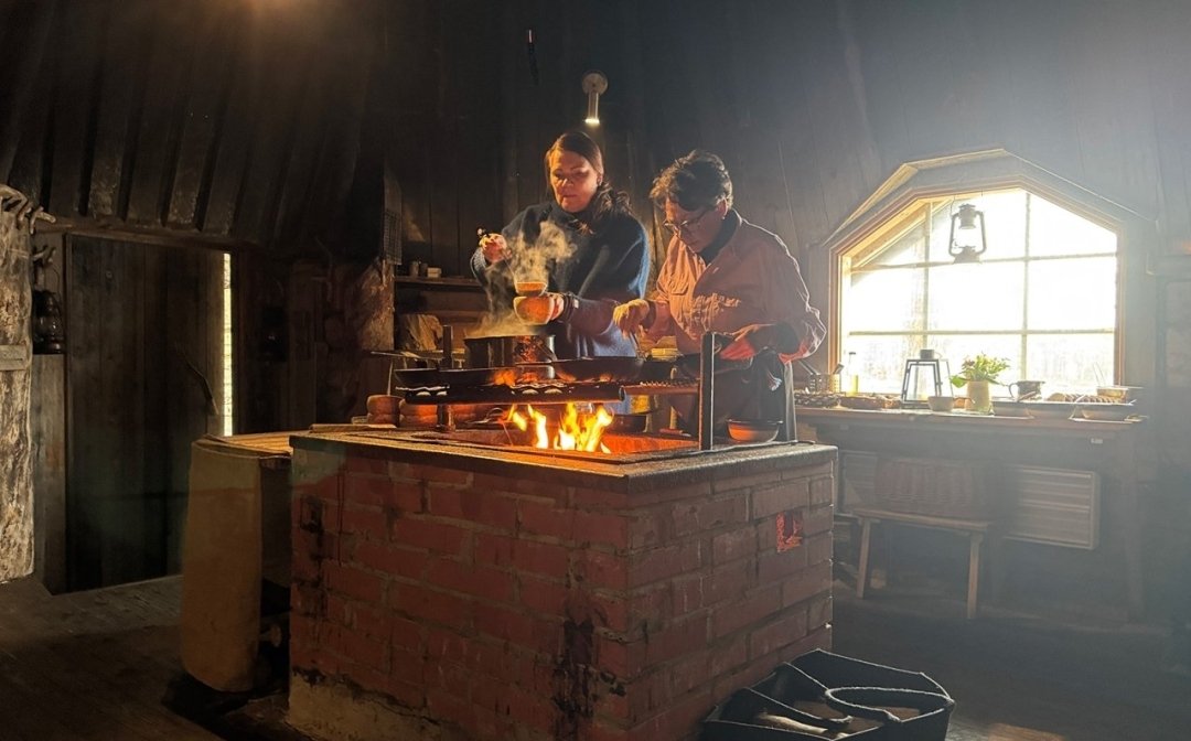 Vuotunki(ヴオトゥンギ)村の牧場、pohjolanpirtti(ポホヨラン・ピルッティ)。「この家は家族が300年以上この場所で暮らしています。私たちは11代目です」とタニアが教えてくれた。プッラと呼ばれるフィンランドの甘いペストリー作りを体験する。シナモンと砂糖を生地に広げ、伸ばしてねじって、きれいな結び目にする。パンを焼いている間に、サウナの見学へ。