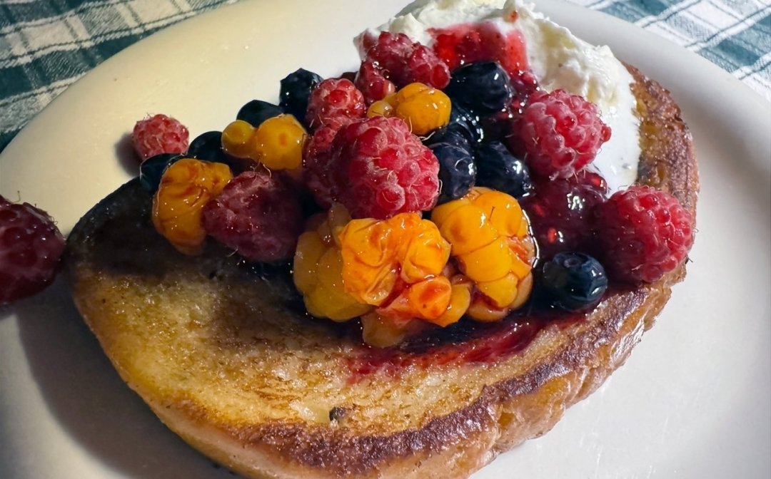 屋内施設「コタ」の薪キッチンを囲んで、地元の特産を使ったランチが始まる。コイワシ、野生キノコスープ、デザートのケユハット・リタリット(フレンチトースト)のローカルフードだ。「私たちは『ワイルドフード・クーサモ・ラップランド』というブランドを持っています。自然から多くの食材を得ることができます。きのこ、トナカイの肉、魚、多種類のベリー、ハーブです」