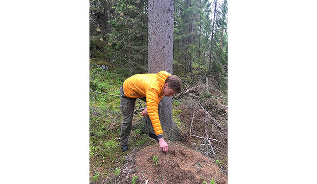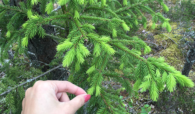 バーベキューをしようということで山へ。山を散策しながら、そこら中に生えている松のような木から若い芽を摘んでいきます。これがビタミンたっぷりだそうで。ブルーベリーもフィンランドを代表するフルーツのひとつ。注意深く見ていないと見過ごしそうなのですが、こちらも後ほどバーベキューに使用するんだそう。