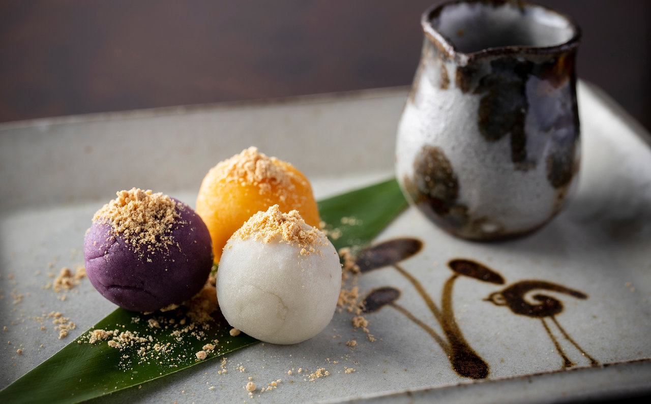 と、「そう来たか!」というサプライズ感のある料理が続々とお目見え。さらにデザートの「あかね芋のタルト」「マンゴーのババ 泡盛の香り」と続きます。