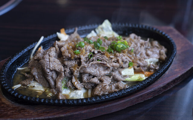 お昼はかなりコストパフォーマンスの良いものが揃っていた。今回いただいたのは「うめしまランチ」。これは壱岐市との共同企画メニューで、壱岐牛のスライス肉(いわゆる切り落とし)を野菜と鉄板焼きにしたものにご飯とお味噌汁とサラダと香物がつくシンプルな構成。だが、肉の柔らかさと旨味に肉の鮮度と肉そのもののレベルがわかるのだ。とにかく美味い。「特選カルビ定食」はその場で網焼きのスタイルで定食がいただけるとリーズナブルで人気も高い。芦辺でまずは壱岐の味。壱岐牛を堪能する。