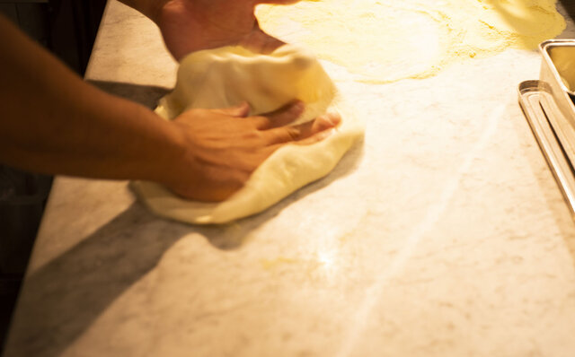 人気のマルゲリータを注文する。イタリア産の小麦粉でふわふわに丸めたピザ生地は手の下でみるみるうちに薄く丸くなっていく。そこに自家製のトマトソースにバジルとモッツァレラチーズをのせ、イタリア製のピザ窯で手早く火加減を見ながら、ピザを回して均等に火を当てる。このピザ生地は薄く、軽いのだけれど、きちんと味と歯応えがある。まるで飲んでいるかのように口にするする入る。また来たいお店だし、こんな店が家の近くにあったら、と思う店だ。
