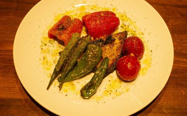 今回のミシュランの5軒の中で、最も個性的だったのが、この「ふうりん」かもしれない。店主の山下輝昭さんの人柄も良く、なんとも和む。山下さんは子どものころから釣りが好きで、実は店の隣ではお父さんが壱岐牛の飲食店をされているのだが、「お前には継がせない」と言われ、好きな魚でお店を開業したというのだ。