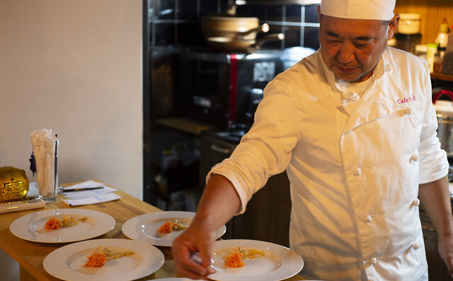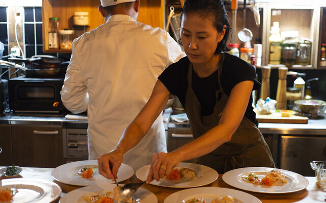 おふたりは壱岐島移住者。宇さんが壱岐島を訪れて、ここへの移住を決めたそうだ。その間には海外も視野に入れていたそうなので、壱岐島にいかに魅力があったか、と思う。おふたりのお人柄も優しく、柔らかな印象。料理をつくる宇さんとお皿の準備と盛り付けをフォローする真澄さんの見事なコンビネーションも絶品! この流れが美味しいお酒と食事をさらにおいしくさせる。いつしか時間も忘れ、ただただ穏やかな気分になれる。壱岐島取材最後の夜だったが、最高のディナーだった。これを食べるだけでも壱岐島に行く価値があるというものだ。