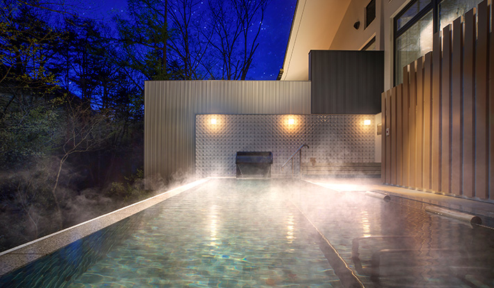 47 万平米の広大な敷地の中に立つリゾート内には、葛温泉 100%の引き湯を内湯・貸切風呂のみならず、北アルプスの森を一望できる露天風呂でも楽しめるこだわりの天然温泉のほか、一面のガラス窓と天井から降り注ぐ日差しから夕焼け・星空を眺めながら、お子様も大人の方もウォーターアクティビティを 1 年中満喫できる室内温水プールや、非日常の空間で心も体も解きほぐすスパを用意。