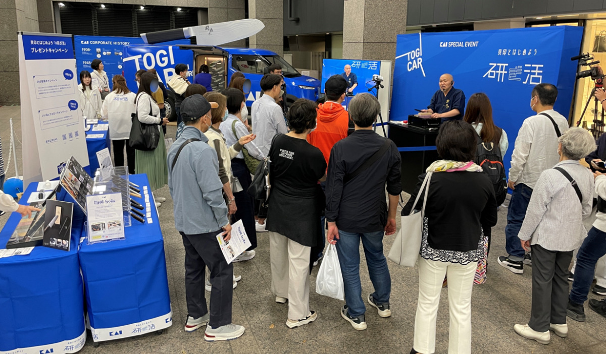グローバル刃物メーカーの貝印株式会社は2024年5月11日(土)、12日(日)の2日間、研ぎ啓発プロジェクト”研ぎ活”の一端として制作したオリジナル車両「TOGI CAR™」を中心とした、「研ぎ」を伝えるリアルイベントを新宿髙島屋にて開催された。