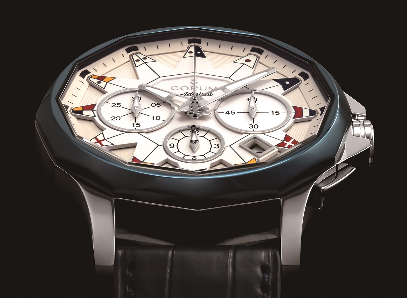 その流れを汲む、「アドミラル」シリーズは、正確な時刻調整が可能になるプッシュボタンやクロノグラフ、自動巻きムーブメントなど高い技術力と、12角形ムーブメントケースや文字盤にあしらわれた国際海洋信号旗など独特のデザインが用いられており、CORUMのエレガントでスポーティーな個性を表現している。
