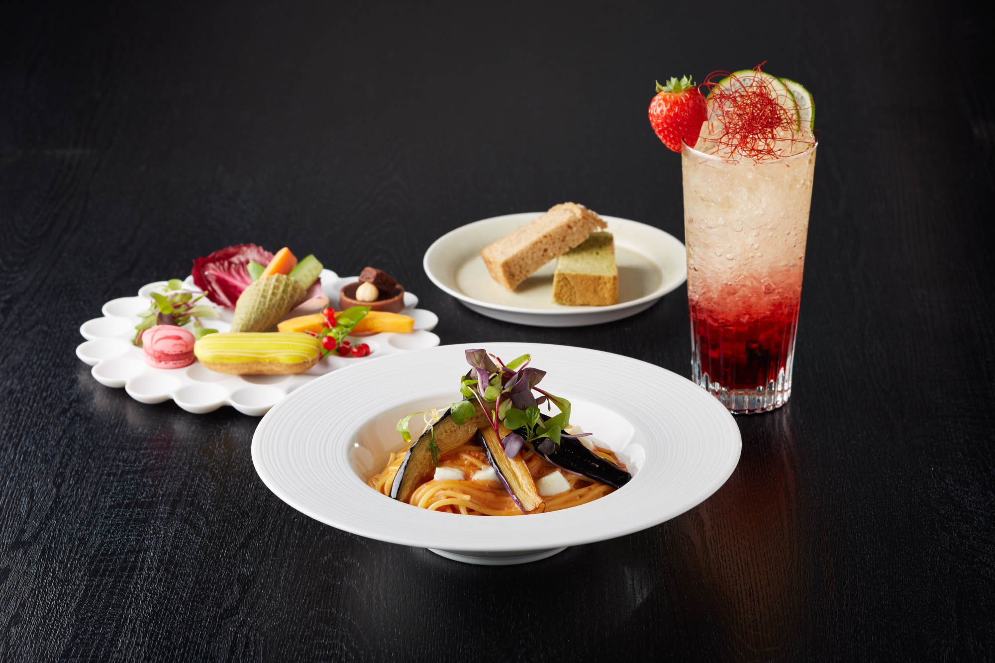 「REGALO Moment Cafe (レガーロ モーメント カフェ)」では、パスタは「REGALO」のスパゲッティとパスタソースをベースに、「六雁」総料理長の秋山 能久氏が監修する数寄屋橋茶房とのコラボによる特別メニュー「REGALOコラボセットメニュー」(税込価格1,350円)を提供する。