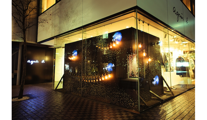 株式会社ネイキッドは、agnès b.(アニエスベー)との初コラボレーションとして、クリスマスキャンペーンのイルミネーションアート「Turning Light Photophore by NAKED」を、アニエスベー青山店のショウウィンドウにて、12月25日(月)まで無料公開している。