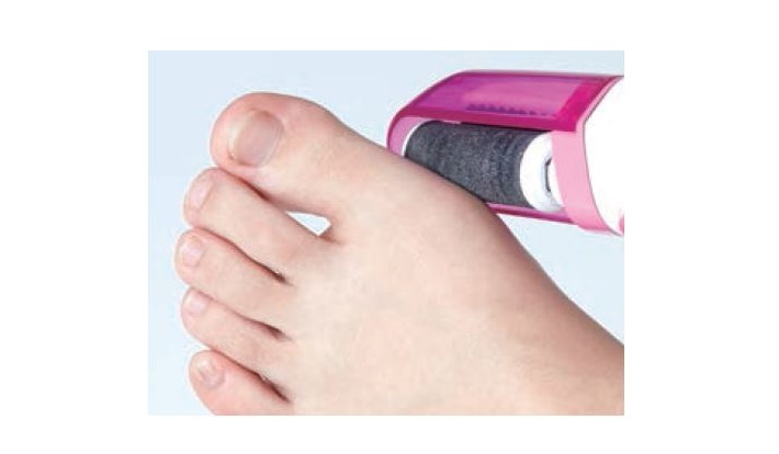 角度によって肌にあたる面積を変えられるので、かかとのような広い部分はもちろん、指の付け根やヒールだこなどの細かい部分にもぴったりフィットし、足全体の角質をケアできる。