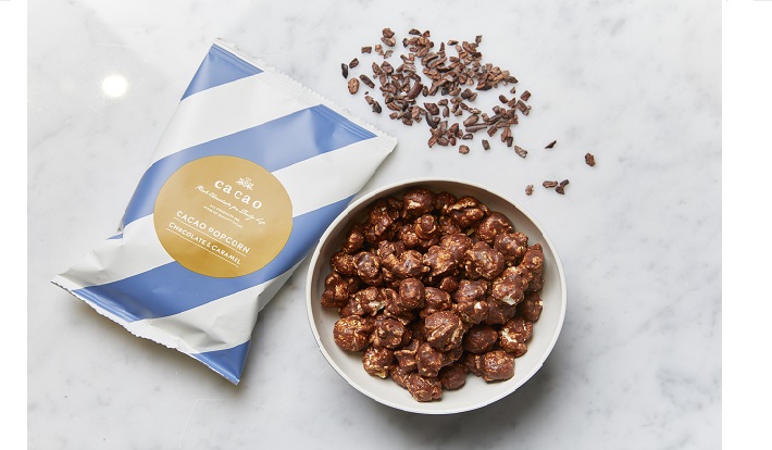 ca ca oオリジナルのポップコーンが新登場。さくさくのポップコーンにカリカリの食感が楽しいキャラメルと、香り豊かなコロンビア産のカカオパウダーの香りが口の中に広がる、思わず手が止まらなくなる大満足スイーツ。ちょっとしたプレゼントにもオススメの逸品。