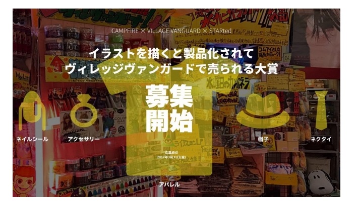 「遊べる本屋」をキーワードにユニークなアイテムを展開するヴィレッジヴァンガードが、クラウドファンディング・プラットフォーム「CAMPFIRE」を運営する株式会社CAMPFIREとの共同で、本日2月28日より、「イラストを描くと製品化されてヴィレッジヴァンガードで売られる大賞」を開催した。