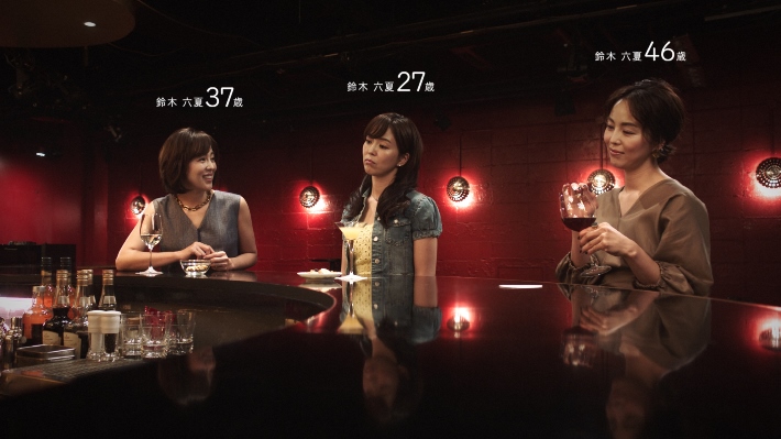 ウェブムービーでは、とあるバーに、過去と未来の自分が集結して4世代の女子会が繰り広げられる。主人公の30代の自分は、悩める20代の自分を前に、思い切り紫外線を浴びていた思い出を振り返り、後悔を吐露。そんな後悔を抱く30代に、40代、50代の未来の自分が思い出をポジティブに捉え、今を楽しむためのエールを送るストーリー。4通りのヘアメイクと衣装にもご注目あれ。