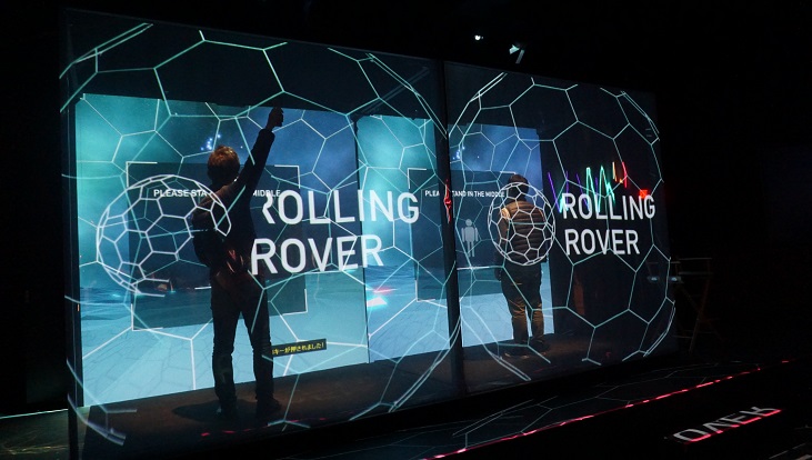 山を転がっていくような非日常の体験を楽しめる“Rolling rover”や、流れてくる指定のポーズに合わせて同じポーズをとる“Tunnel dance”、桜が舞う美しい空間の中に入り込んだ体験ができる“Cherry blossoms”などのコンテンツが公開され、周りのギャラリーも楽しんでいた。
