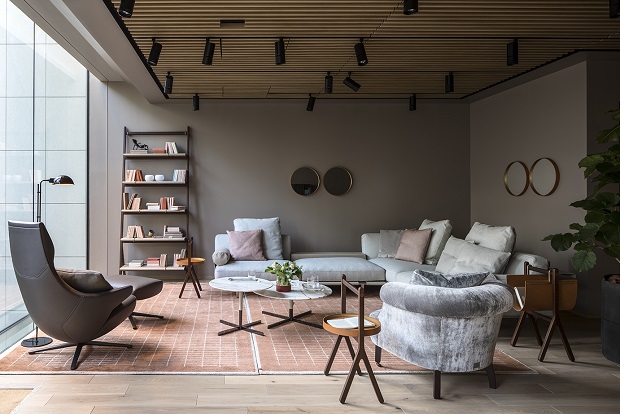 新店舗では、イタリアのマエストロ(家具職人)の手によりつくられる彫刻のように優美なデザイン家具が展示され、最高級の革「ペレ・フラウ」に鮮烈なイタリアンカラーを纏った伝統的な代表作「バニティフェア」やアームチェア「1919」など、イタリアの“家具芸術”といえるアイコニックなコレクションが揃っている。