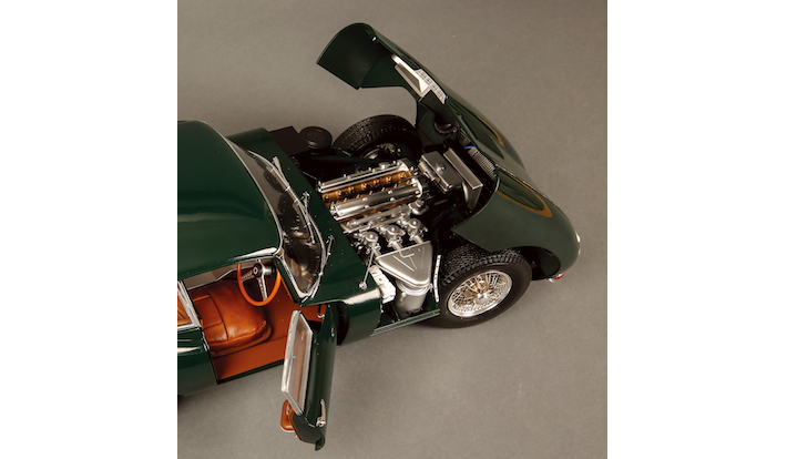 本シリーズは、世界で最もスマートでスタイリッシュな車と名高い「ジャガー・Eタイプ」の1/8スケール組み立てシリーズで、実車さながらの緻密な内部構造を備えた本格モデル。