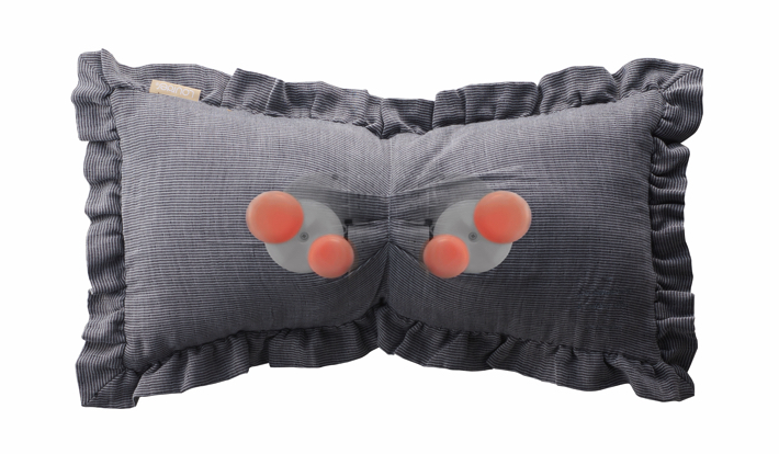 身体に心地よくフィットする綿を採用。クッション性がさらにアップ※。絶妙な加圧バランスでふんわり優しいマッサージを実現した。手もみ感覚を再現した大小のもみ玉にはヒーターを内蔵し、あたためながらほぐす。