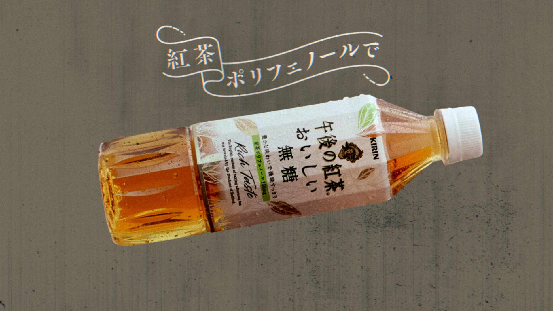 「キリン 午後の紅茶 おいしい無糖」は、30~40代の働く男性をメインターゲットに、茶葉本来の爽やかな香りと豊かな旨み、クセのないすっきりとした後味で、スマートでこだわりのある大人にふさわしい紅茶を目指した商品。