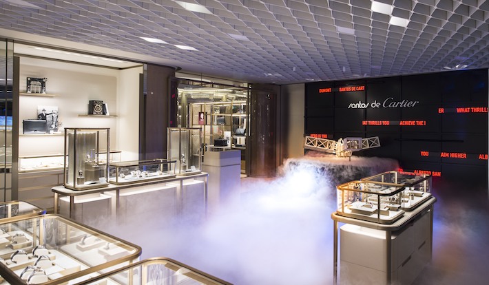 店内には、ジェイク・ギレンホール主演による「サントス ドゥ カルティエ」ショートムービーのワンシーンを思わせる”雲”が再現されている。
