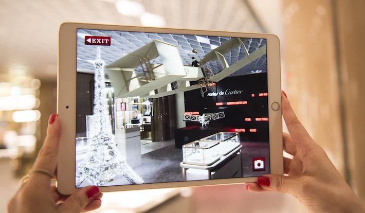 この他、サントス=デュモンの設計による飛行機を思わせる展示や、店内のAR Viewerでかつてサントス=デュモンが飛行を成功させたパリの上空に飛行機を飛ばす体験も。